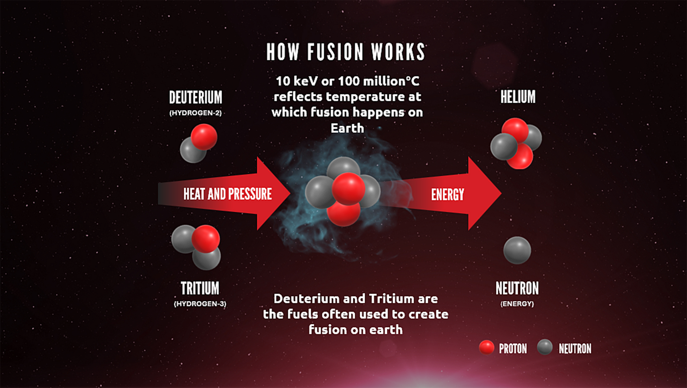 Fusion is a natural process where two atoms are forced by their environment to combine and release massive amounts of energy.